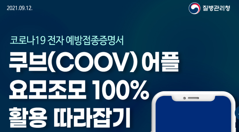 Android, IOS 모두 다운로드 가능 검색어: 전자예방접종증명서, 질병관리청 COOV